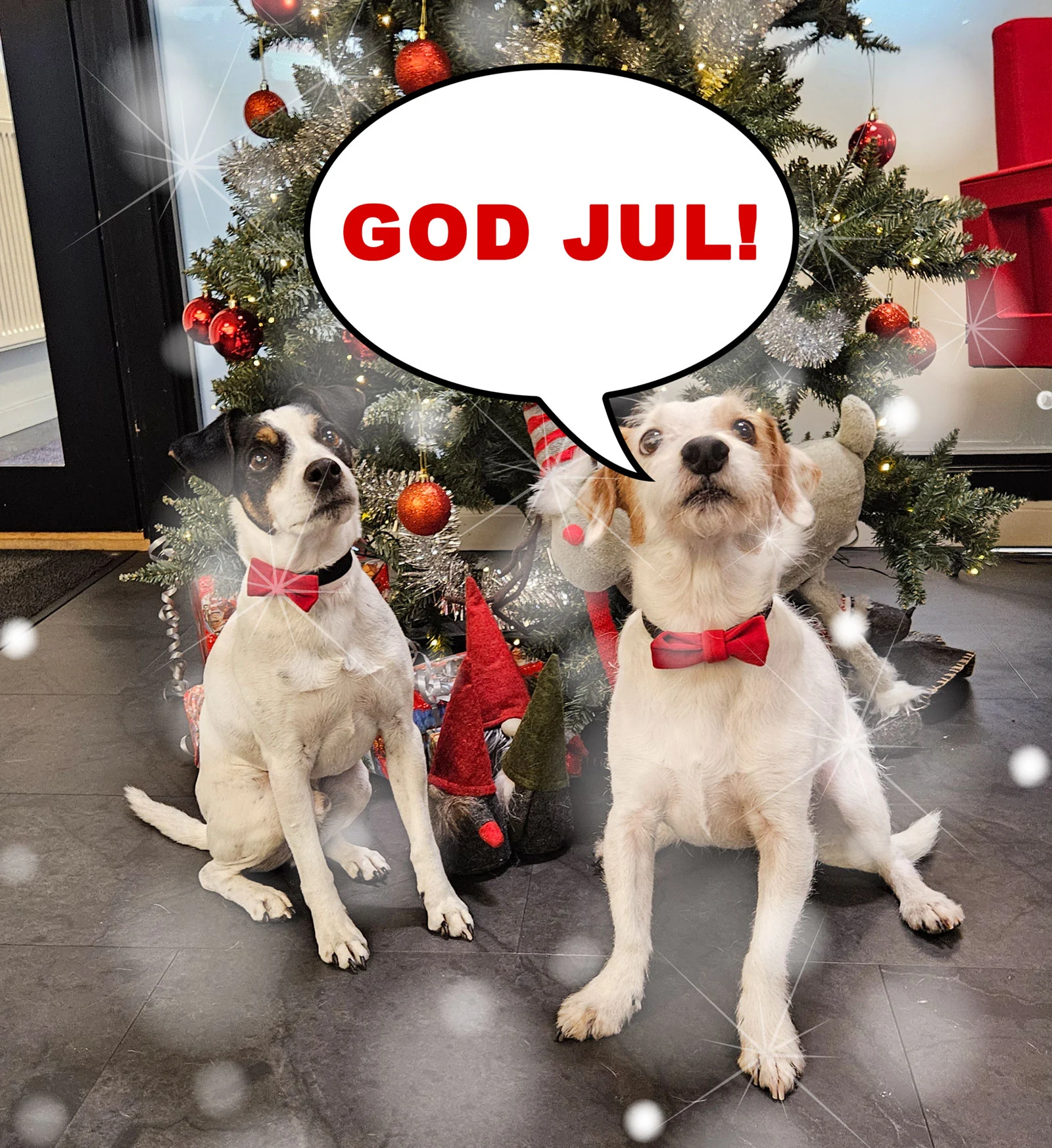 Våra julhundar Ragnar och Sigge önskar er världens bästa jul – för det är ni värda!