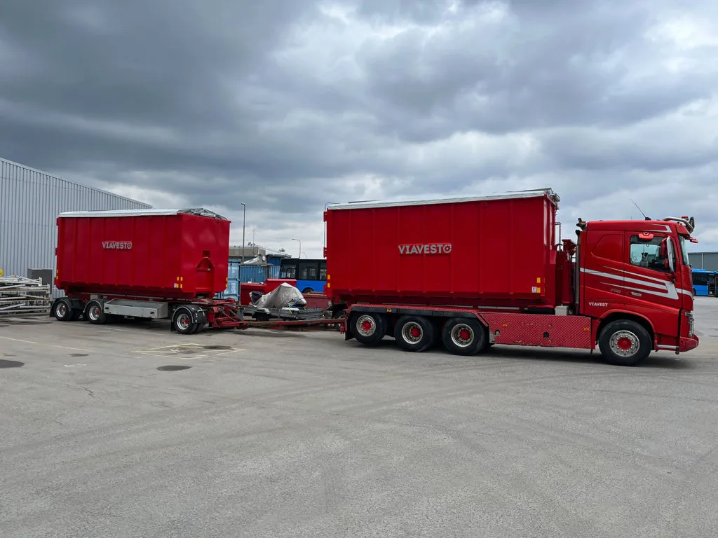 Nya pelletscontainrar med lufttäckning med styrning från hytten. Det är både praktiskt och säkert för chaufförerna – en betydlig förbättring av deras arbetsmiljö. Bilen lastar